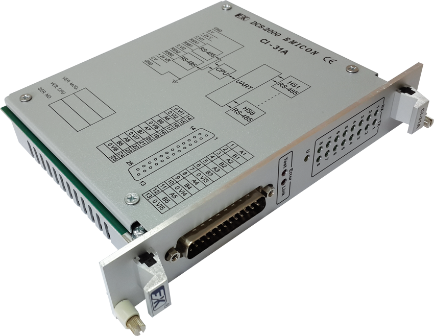 Модуль предназначен для расширения функциональных возможностей контроллеров серии DCS-2000 (М2) в части информационного обмена с интеллектуальными датчиками и исполнительными устройствами. Модуль обеспечивает информационный обмен по десяти каналам интерфейса RS-485. Два из десяти каналов являются системными, по ним модуль обменивается информацией с модулями центрального процессорного устройства. Восемь каналов предназначены для подключения периферийных интеллектуальных устройств.