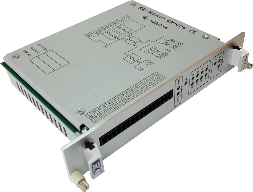 Модуль предназначен для работы в составе распределенных систем управления и имеет две изолированные группы каналов. Первая группа представляет собой восемь гальванически изолированных от системной части каналов ввода сигналов переменного тока 220 В с общей "нейтралью". Каждый вход модуля имеет простую защиту от перегрузки (мощные помехи, разряды, статика, случайное попадание постороннего напряжения) и контроль линии связи с датчиком на обрыв. Пороги срабатывания ("ОБРЫВ ЛИНИИ", "ВЫКЛ", "ВКЛ") задаются программно. Вторая группа представляет собой три гальванически изолированных от системной части канала вывода сигналов переменного тока 220 В, два из которых работают на замыкание и собраны на симисторах, а третий содержит выходы перекидной группы реле (замыкание и размыкание).