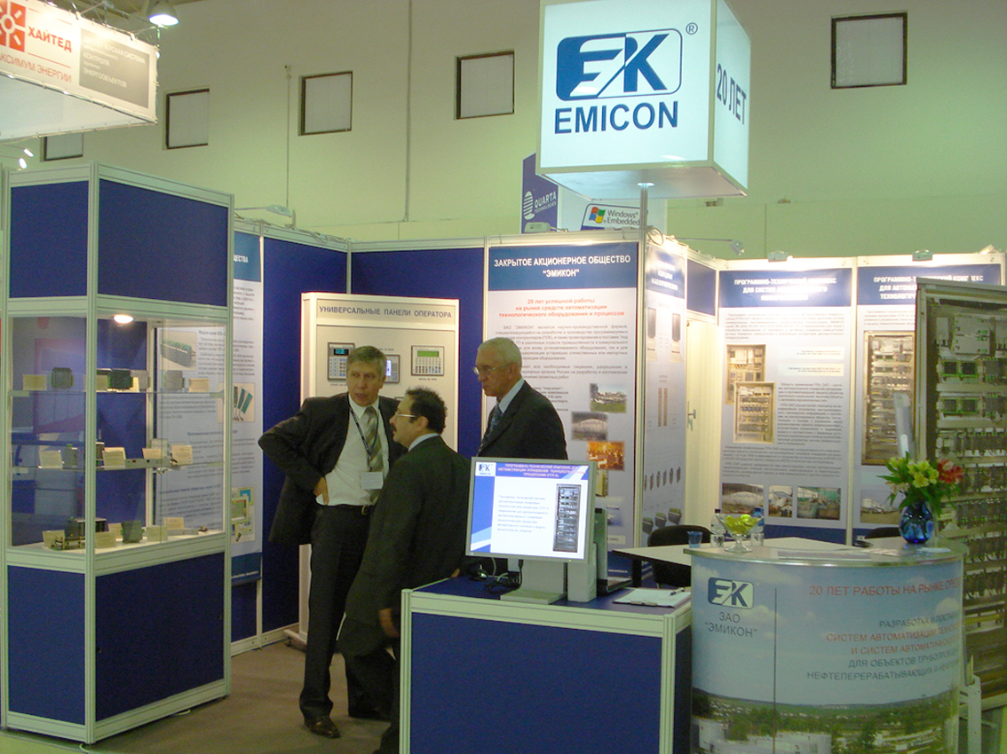 На стенде ЗАО "ЭМИКОН" были представлены модули серий ЭК-2000, DCS-2000, DCS-2001, а также новые разработки (модуль CI-06B, предназначенный для сопряжения интерфейса типа RS-485 с интерфейсом типа ETHERNET, и модуль CPU-03С, предназначенный для работы в составе контроллеров серии ЭК-2000 в качестве центрального процессорного устройства).