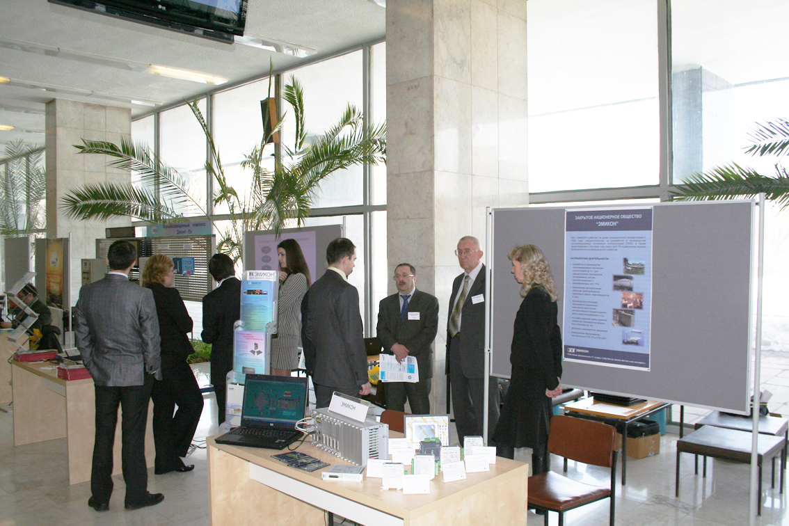 Одновременно с работой конференции в фойе ИПУ РАН проходила выставка, на которой компания "ЭМИКОН" представила новые модули из серии DCS-2000 каркасного исполнения.