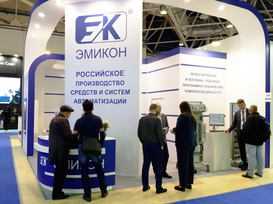 На стенде АО "ЭМИКОН" были представлены демонстрационные стойки и АРМ оператора, имитирующие фрагмент системы автоматизации, выполненной на базе Многофункционального контроллера связи с объектом (МКСО).